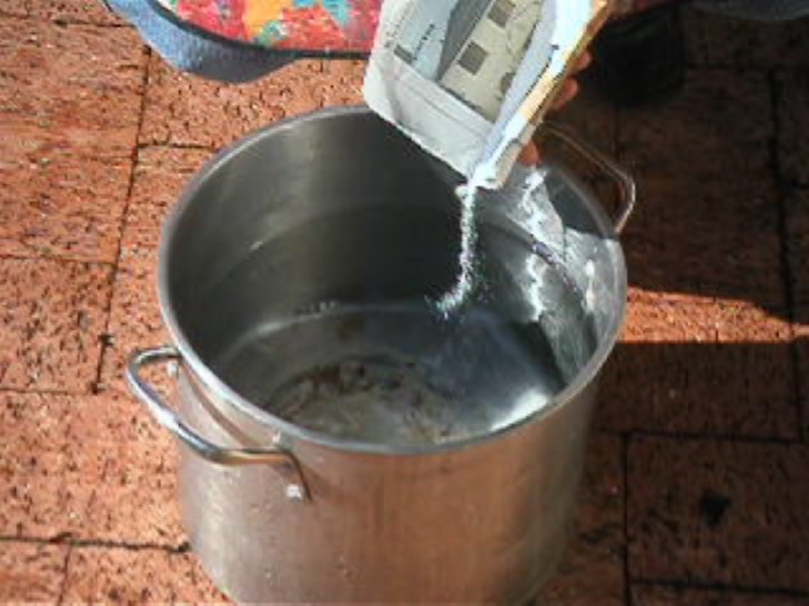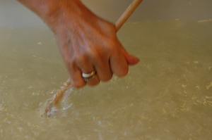 Mixing a handful of pulp in water