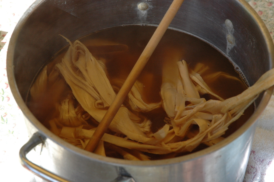 Bark cooking in alkaline water